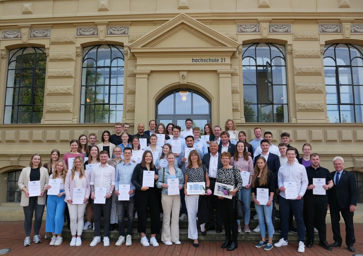 43 Studierende aus allen Studiengängen haben in diesem Jahr mit ihrer Bewerbung überzeugt: sie alle erhalten das Deutschlandstipendium und damit eine einjährige Förderung in Höhe von 300 Euro im Monat. Die Fördergelder kommen zur Hälfte vom Bund und zur Hälfte von Stiftern, die der hochschule 21 verbunden sind.