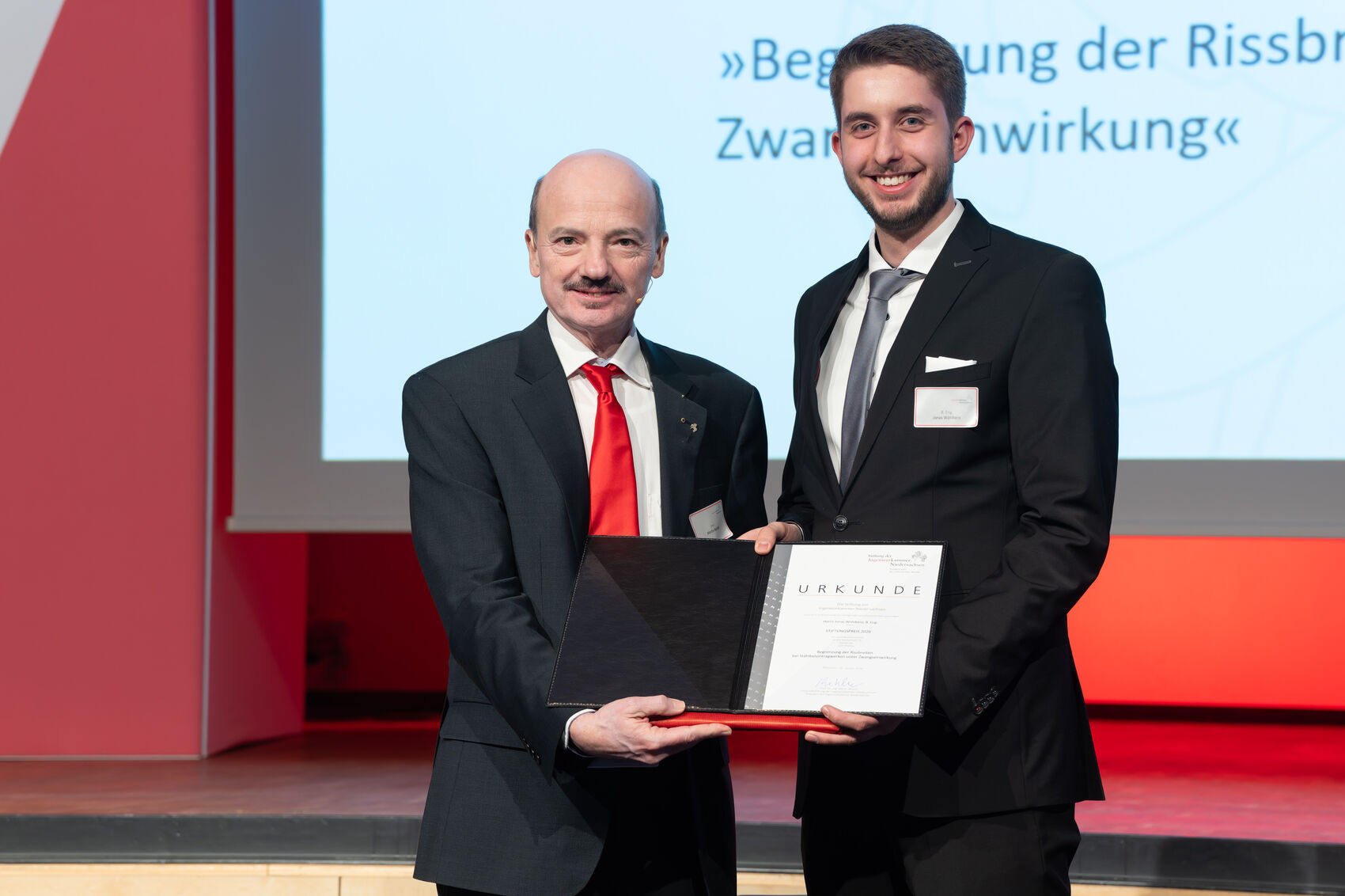 Die Auszeichnung erfolgte "in Anerkennung hervorragender wissenschaftlicher Leistungen" für die Bachelorarbeit mit dem Titel “Begrenzung der Rissbreiten bei Stahlbetontragwerken unter Zwangseinwirkung". Neben Jonas Wöhlkens wurden noch sechs weitere Studierende für ihre Arbeiten ausgezeichnet.