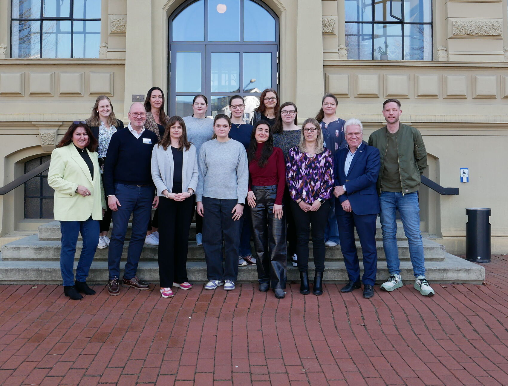 Prof. Dr. Barbara Zimmermann, Studiengangsleiterin, Prof. Ingo Hadrych Präsident hochschule 21 und Bernd Lambrecht, Pflegedirektor der Elbe Kliniken Stade-Buxtehude hießen die Studentinnen herzlich willkommen. Ebenso stellte sich das Team des Fachbereichs Gesundheit vor: Prof. Dr. rer. biol. hum. Lydia Neubert, stellv. Studiengangsleitung und Janna Stromann, Lehrkraft für besondere Aufgaben.