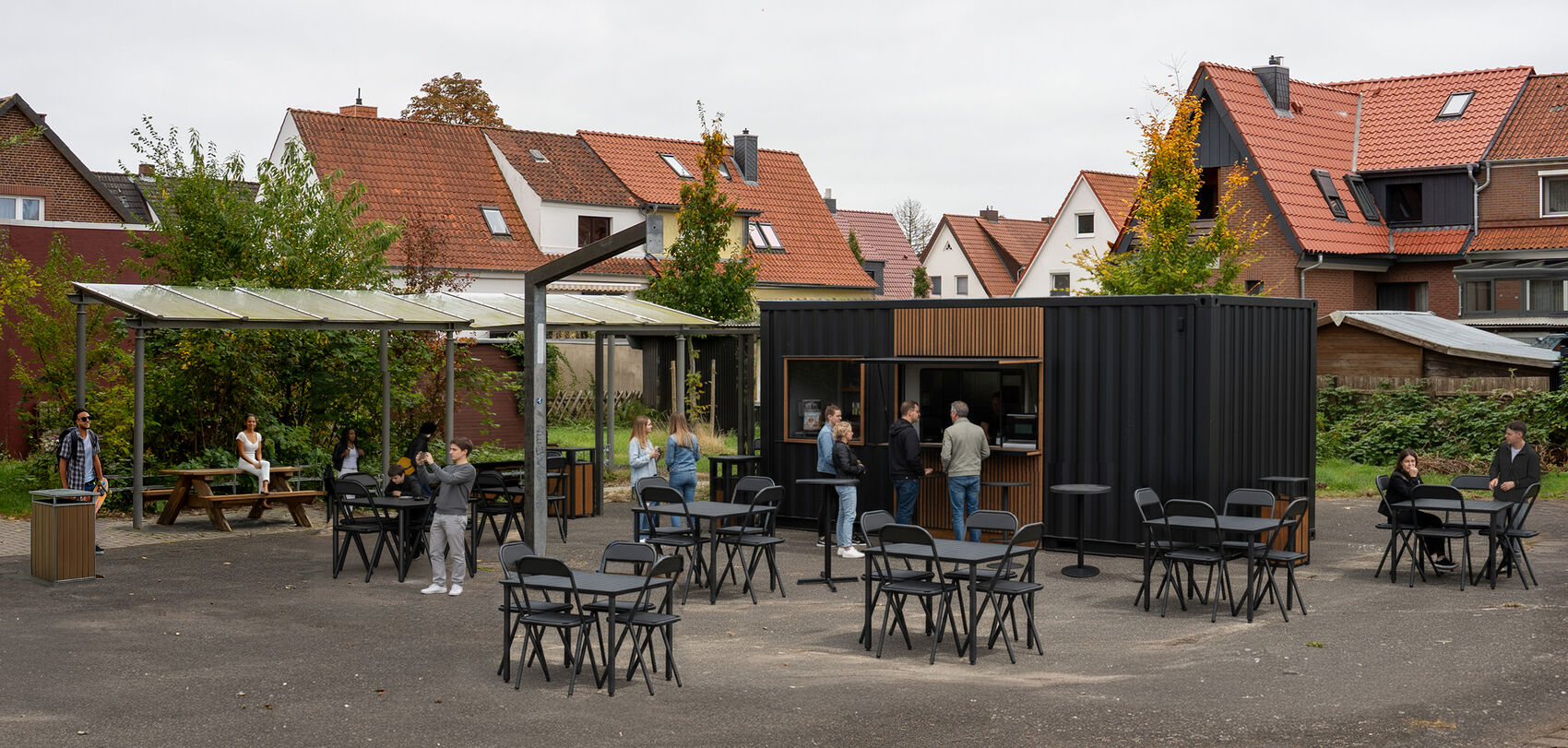 Die aktuelle Planung sieht einen Betrieb durch die Studierenden während der Theoriephasen der Ingenieurstudiengänge im Zeitraum von 11 bis 14 Uhr nach dem Ladeprinzip vor. Eine Erweiterung der Betriebszeit auf die Praxisphasen wäre in dem Konzept seitens des Projektteams nicht leistbar, möglich wäre dies unter Umständen durch eine mögliche Unterstützung der Hochschule. Obwohl primär To-go-Speisen angeboten werden sollen, sieht das Konzept 50 bis 70 Sitzplätze vor, von denen die Hälfte überdacht geplant werden.